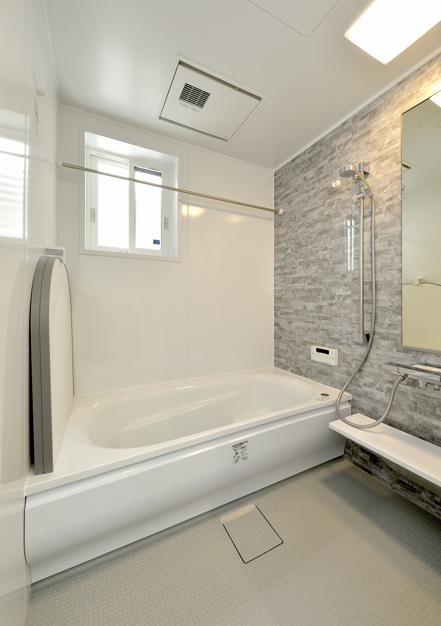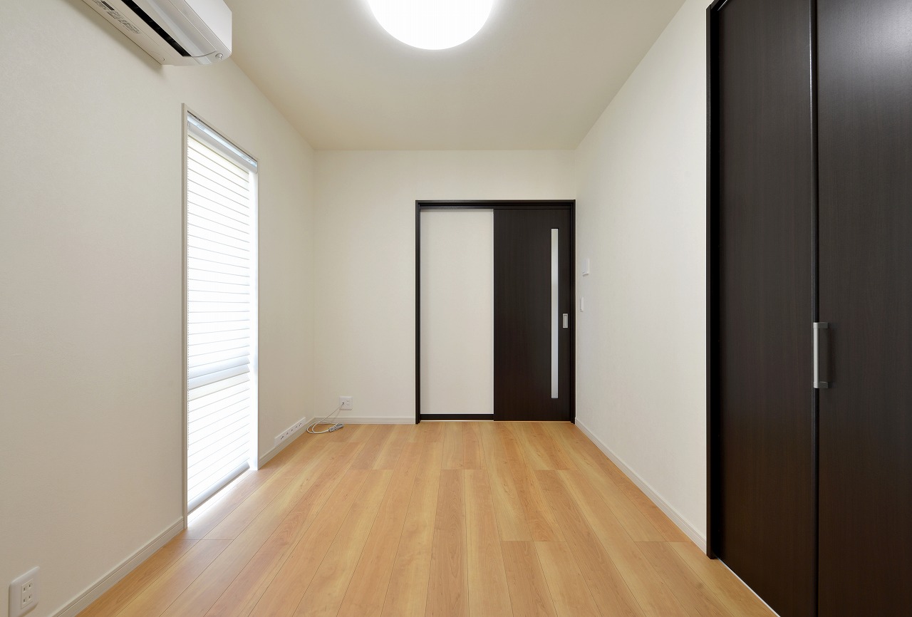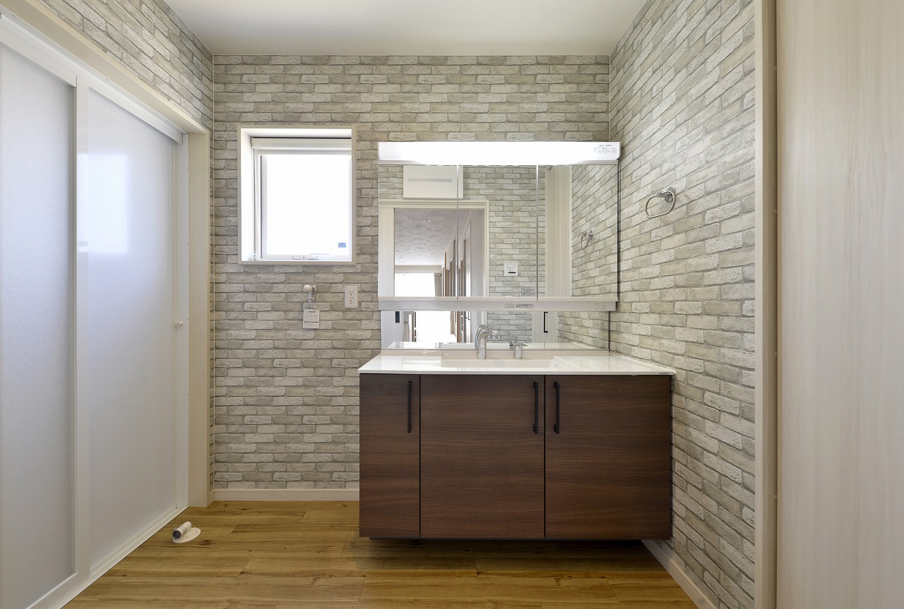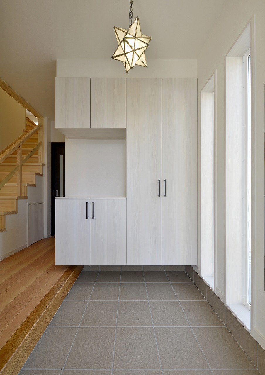 一階床暖房 角地ではあるが敷地を最大限有効活用するために、敷地に沿った造りにした。ベランダを広 めに取り街中の住宅地であっても採光をとれるよう工夫した。
