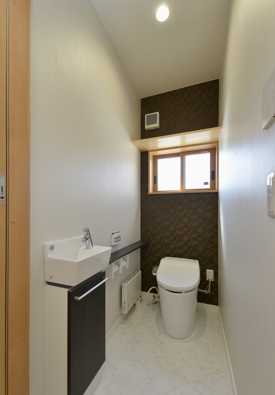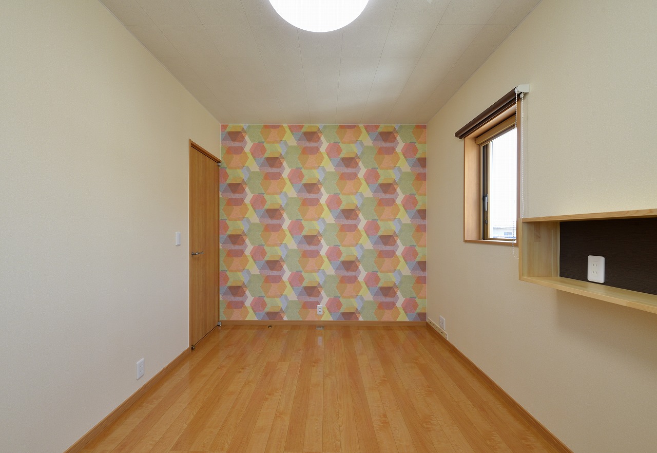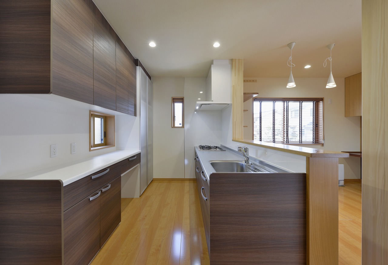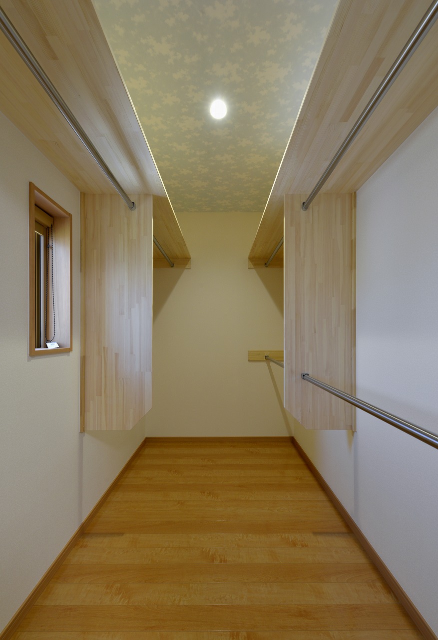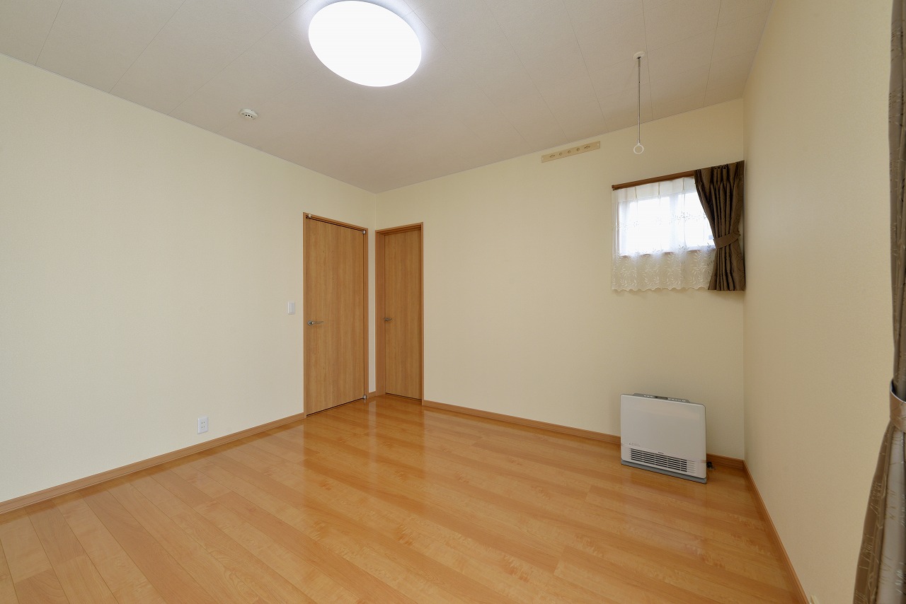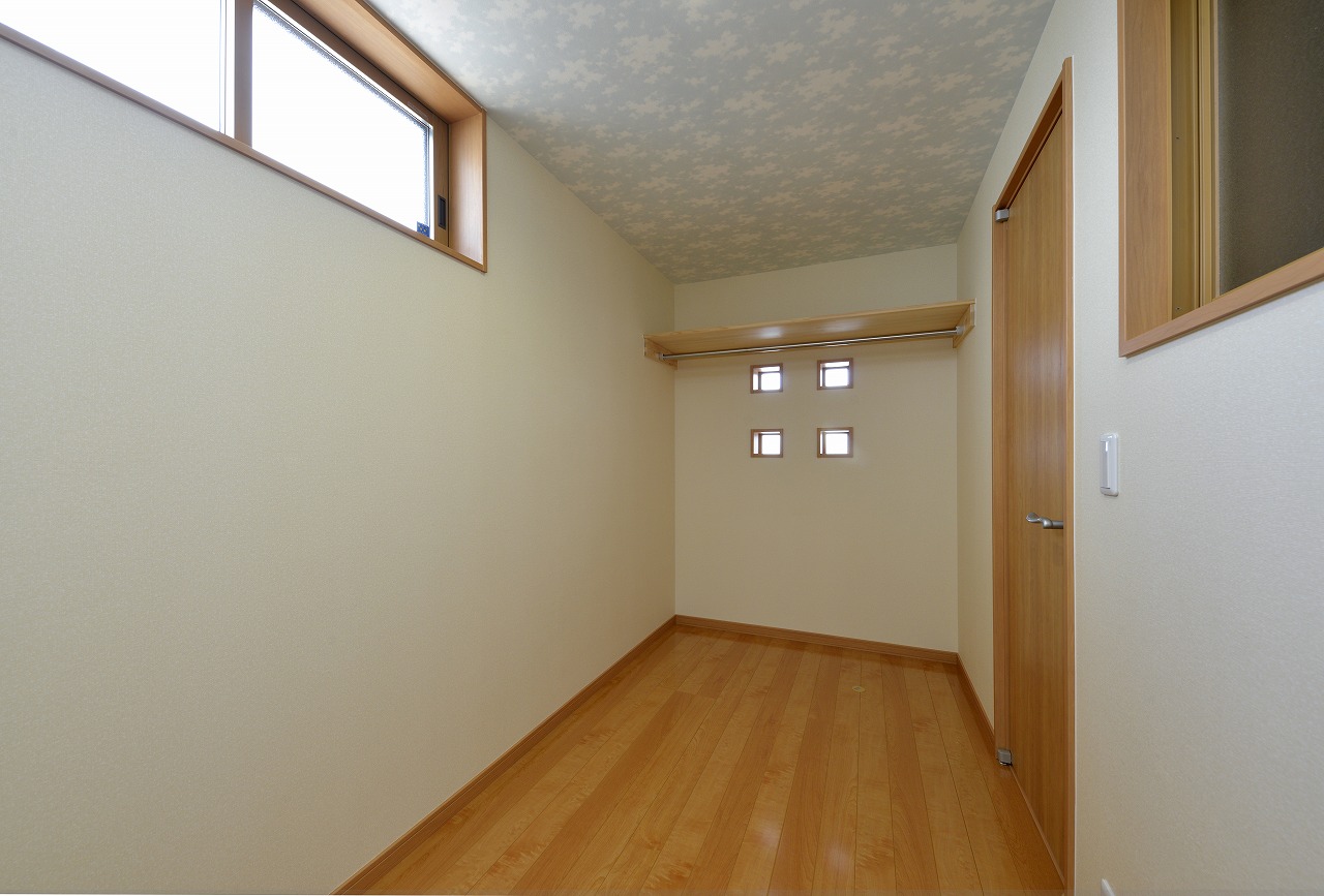 ガスヒーター 随所に作り付けの棚を設置し、収納を考えた造りにした。