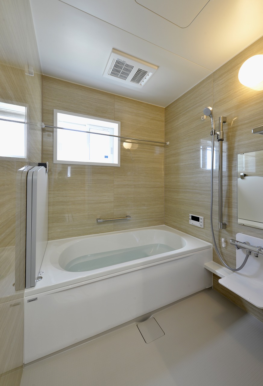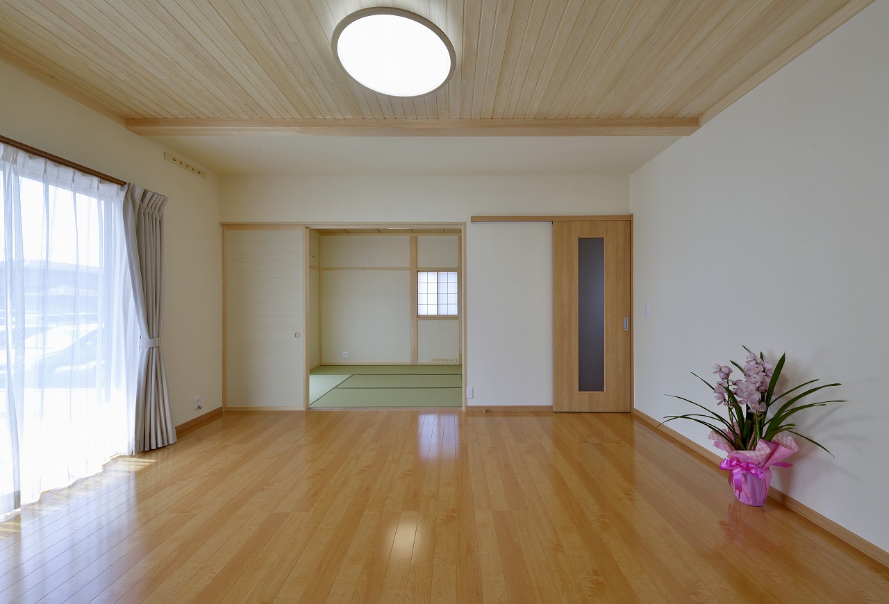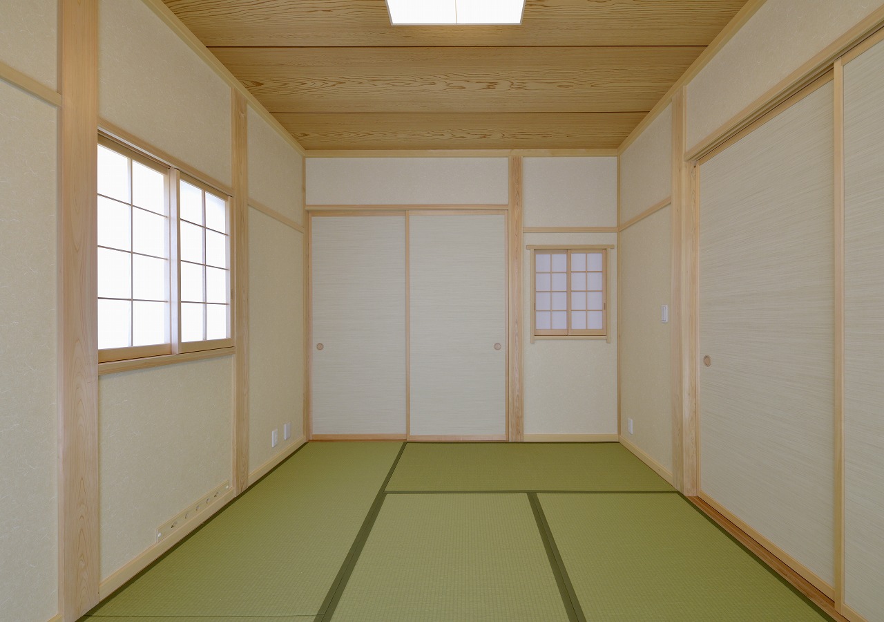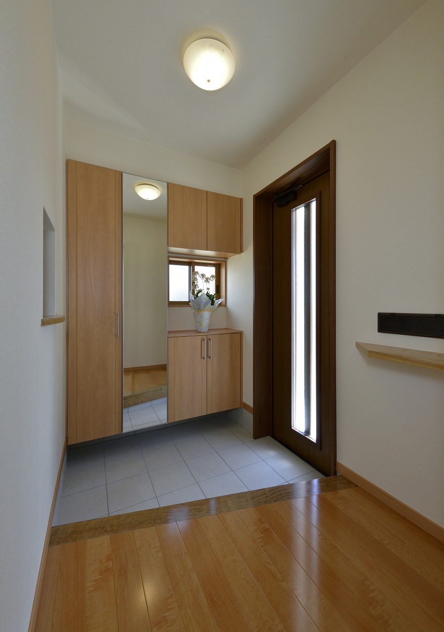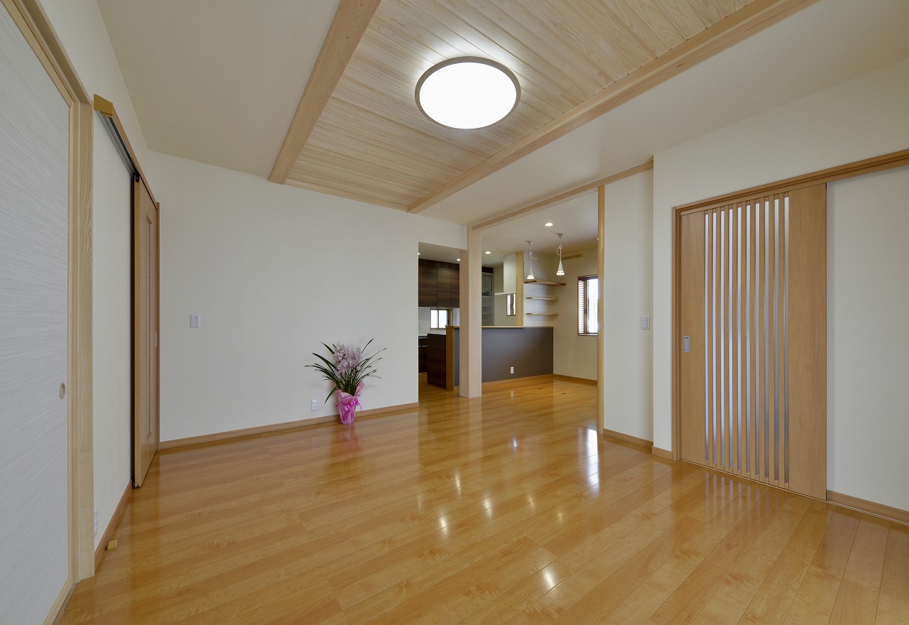 ガスヒーター 随所に作り付けの棚を設置し、収納を考えた造りにした。